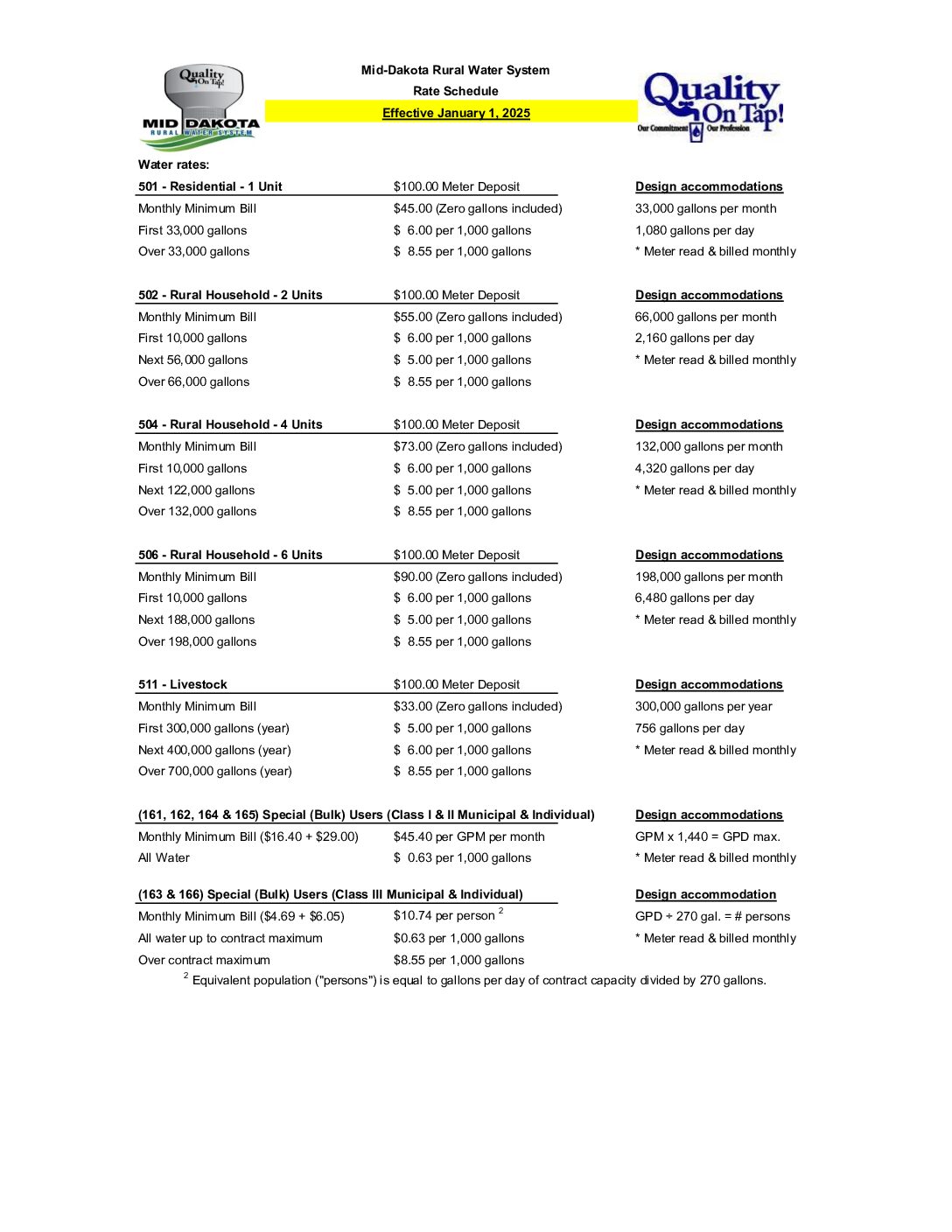 Water Rates 2025